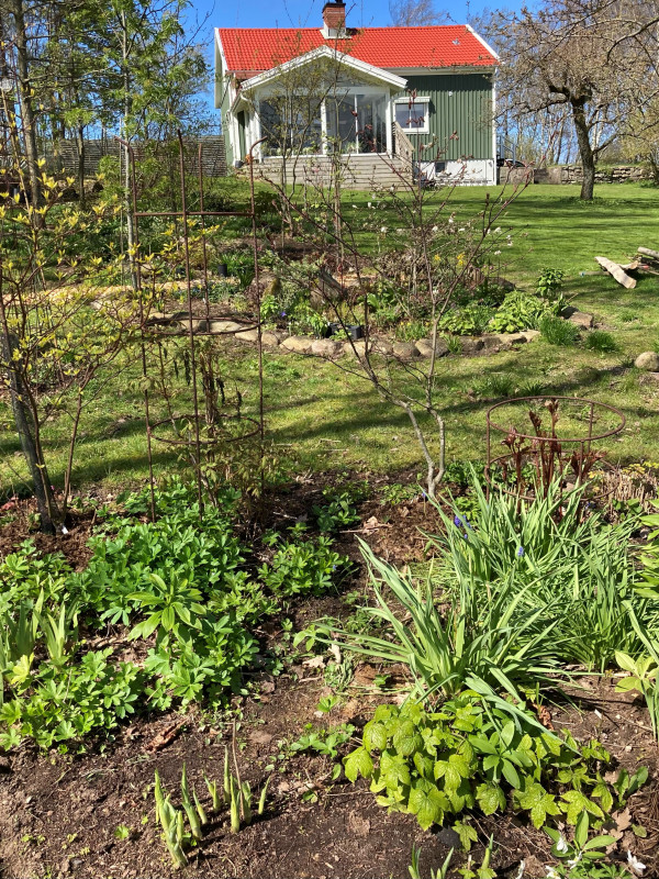 Vi kom till Sotared 2013, till en mycket nergången fastighet. Hela trädgården var full av smällbär, mjölkörtoch nässlor. Men under dessa år har vi lyckats skapa en varierande trädgård med olika miljöer.
